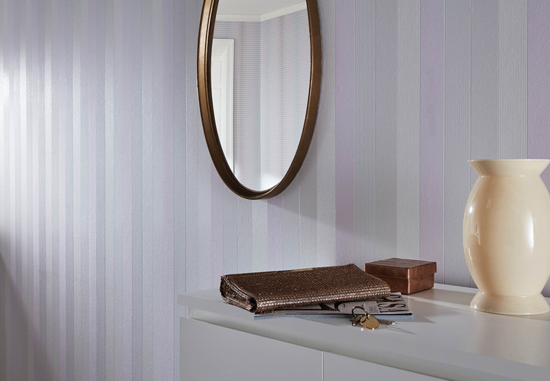 Sam centar "Elegance" serije je reinterpretirani ornament sa jedinstvenim akvarel gradijantom. Savrseno uskladjene pastelne nijanse stvaraju harmonicnu atmosferu. Kombinovane sa klasicnim prugastim uzorkom u boji ornamenta i reljefnog otiska jednobojne strukture, dizajn tapeta zraci ugodnim i romanticnim osjecajem. Dobro usklađeni pribor kao što su petlje salova od zavjesa i jastuci zaokružuju koncept na idealan način.